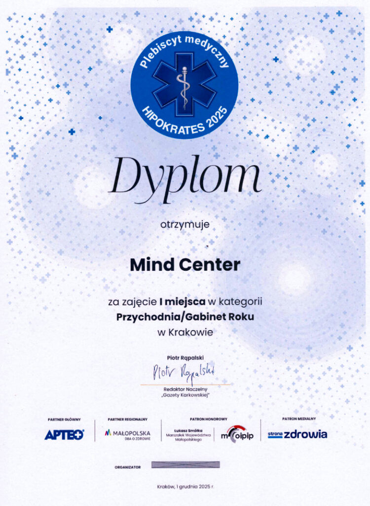 Stworzyliśmy ośrodek MIND CENTER by móc pomagać tak, jak uważamy, że się powinno. Z zaangażowaniem i troską. Z indywidualnym podejściem do każdego człowieka. Pracując w zespole specjalistów psychiatrów, psychoterapeutów i psychologów możemy pomagać w sposób kompleksowy, dopasowany do aktualnego stanu, możliwości i oczekiwań Pacjenta.